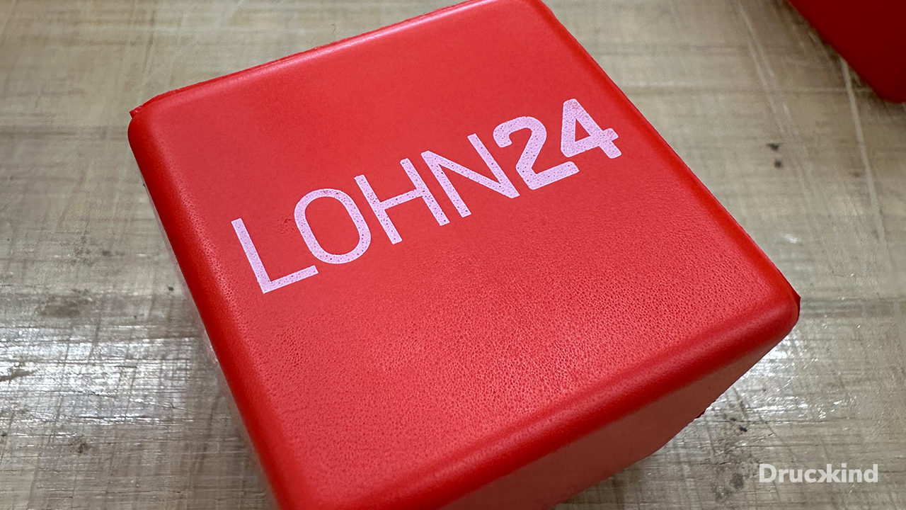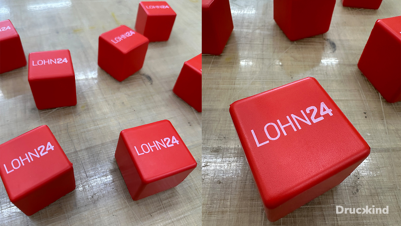 Für unseren wiederkehrenden Kunden Lohn24 durften wir erneut ein individuelles Werbemittel gestalten: einen Stresswürfel, der nicht nur praktisch, sondern auch aufmerksamkeitsstark ist. Der Würfel wurde komplett in der markanten Firmenfarbe Rot gefertigt, während der Aufdruck in Weiß das Logo sowie die zentrale Botschaft von Lohn24 klar und prägnant präsentiert.